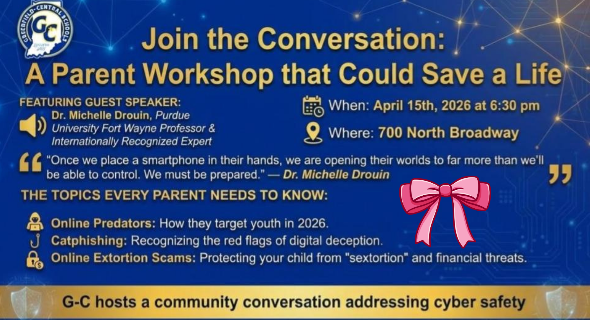 ๐ฒA Cyber Safety Workshop for Parents has been planned for April 15th.