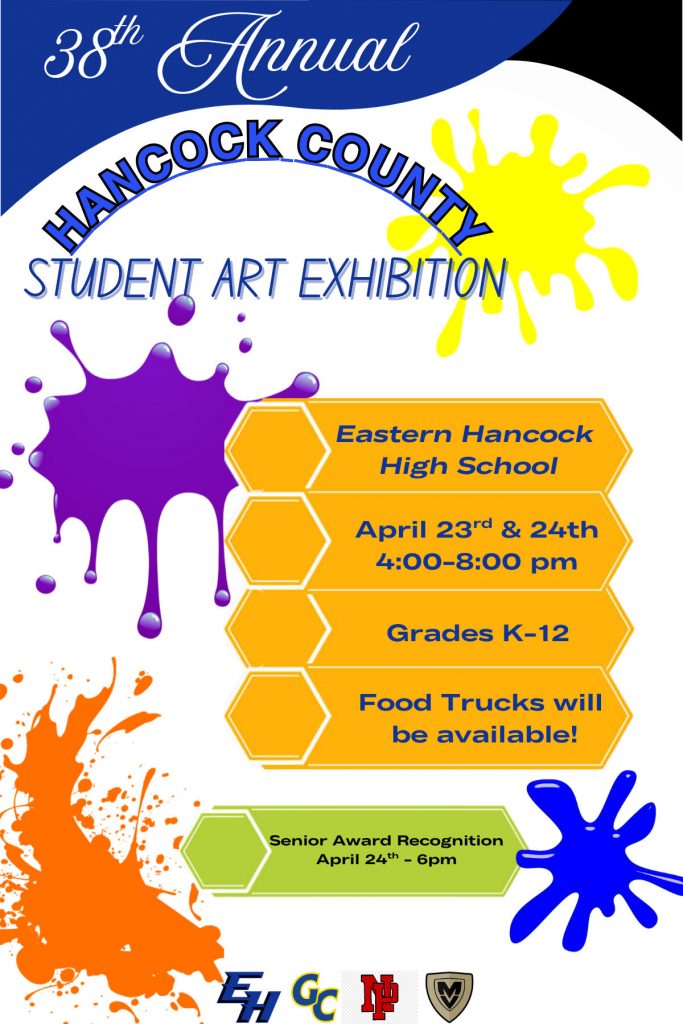 🖌️We hope you can join us on either April 23rd or 24th from 4:00-8:00 p.m. at Eastern Hancock High School.